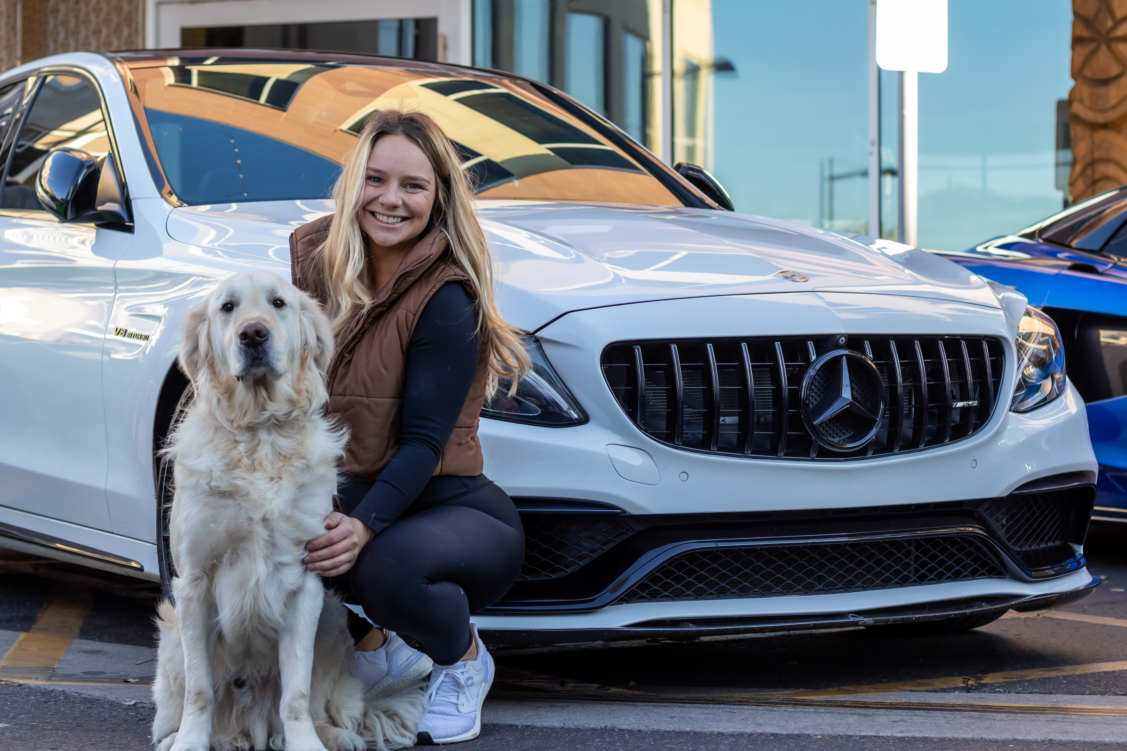 Kash, the Golden Retriever was photographed at High Street Mall at a Highline Autos car show. Kash is loved by his owners who requested that I take photos of him in front of their car that they entered in the show. Kash is very photogenic and very friendly, as many golden retrievers are.